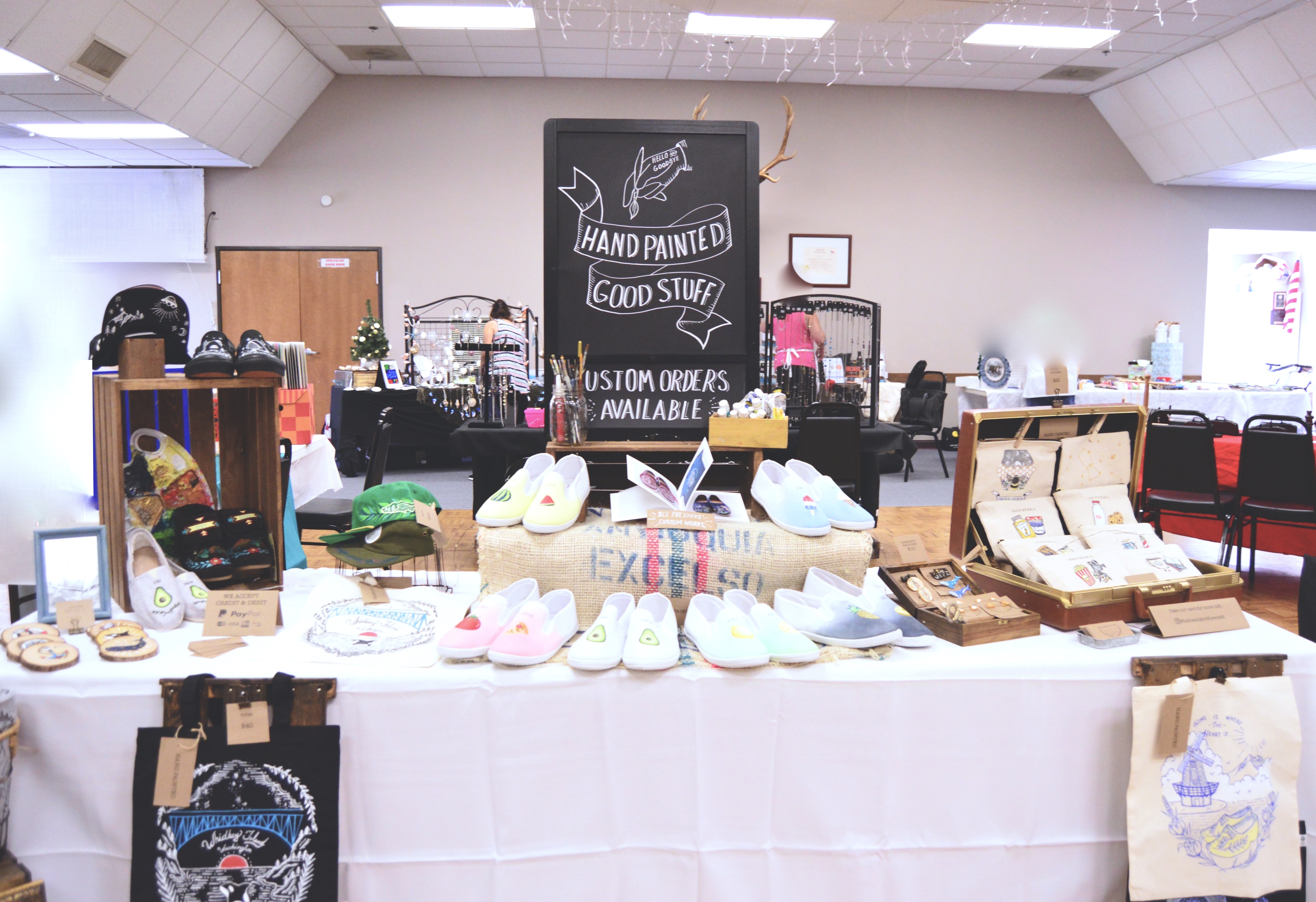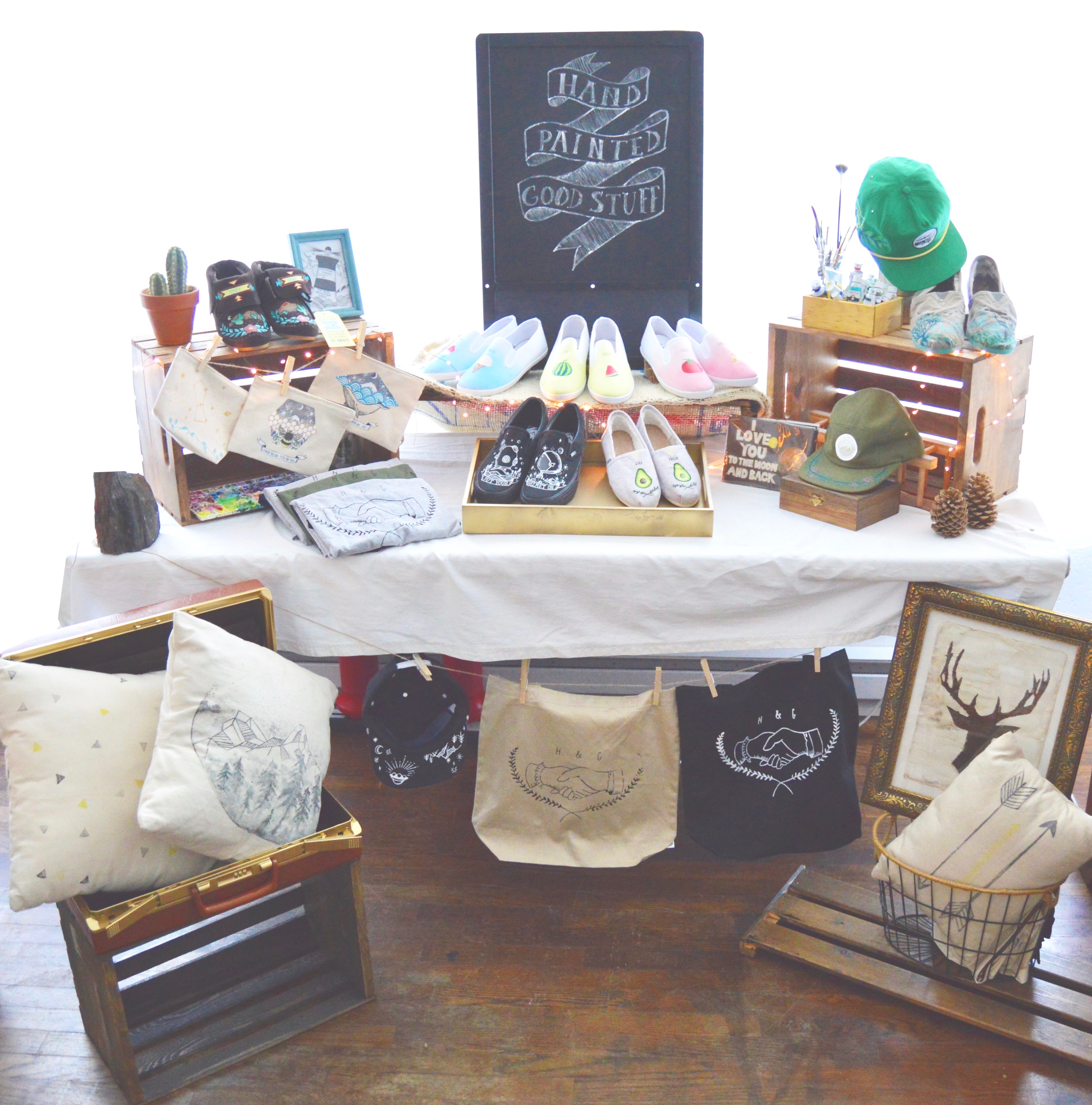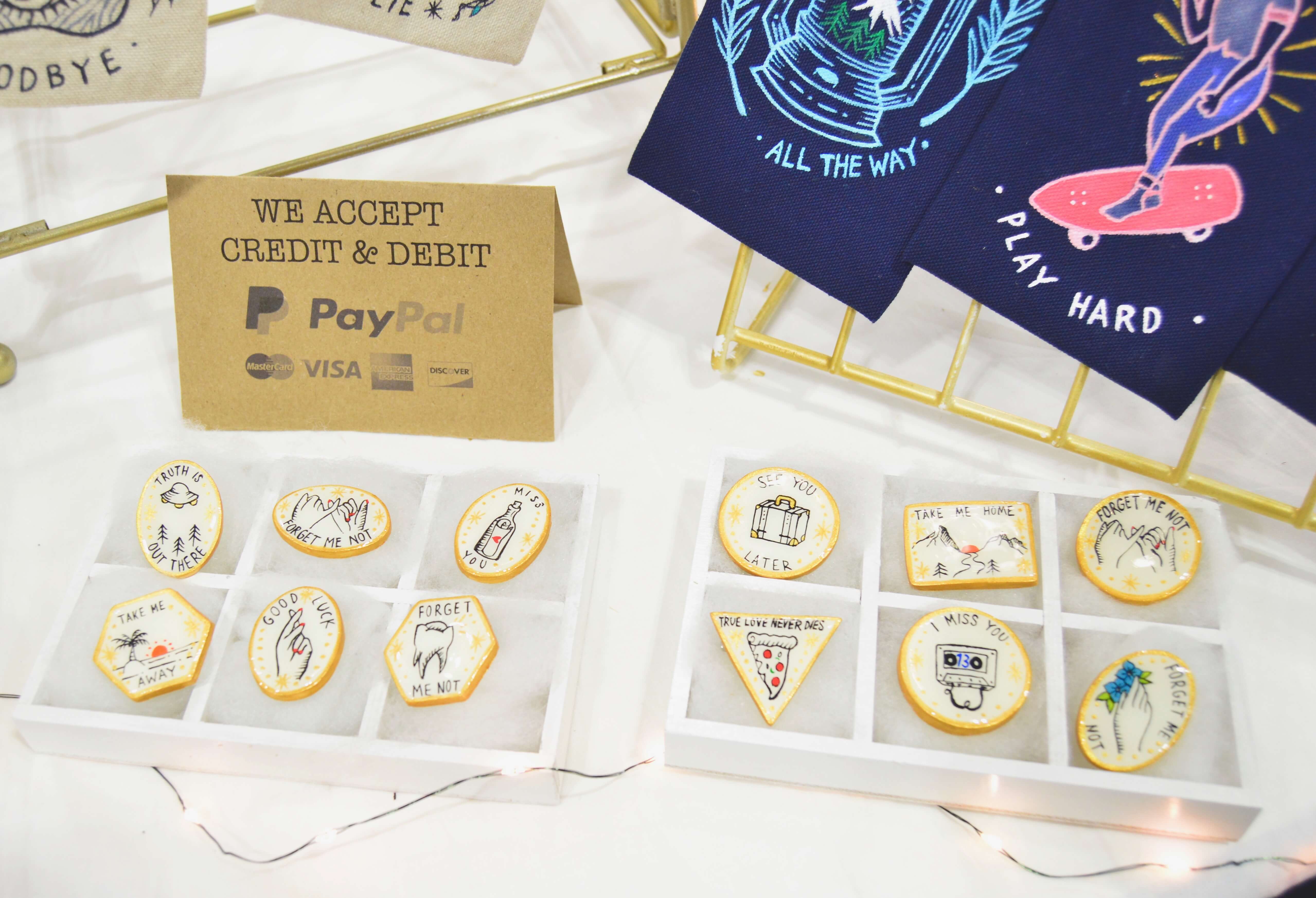 日本と言うかminneのカラーだと思いますが、うさぎ、クマ、りす等の愛くるしい動物モチーフ、お花のアクセサリー、キャンディーやお寿司柄の食べ物をあしらった小物…など、可愛いらしい物を売っているブースが多い印象でした!